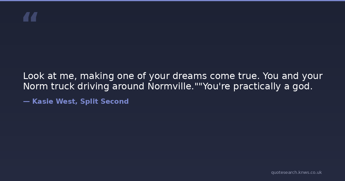 Look at me, making one of your dreams come true. You and your Norm truck driving around Normville.""You're practically a god.