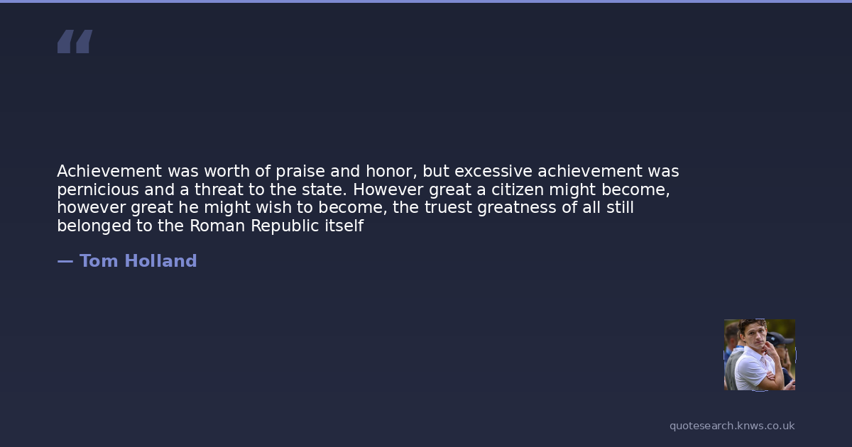 Achievement was worth of praise and honor, but excessive achievement was pernicious and a threat to the state. However great a citizen might become, however great he might wish to become, the truest greatness of all still belonged to the Roman Republic itself