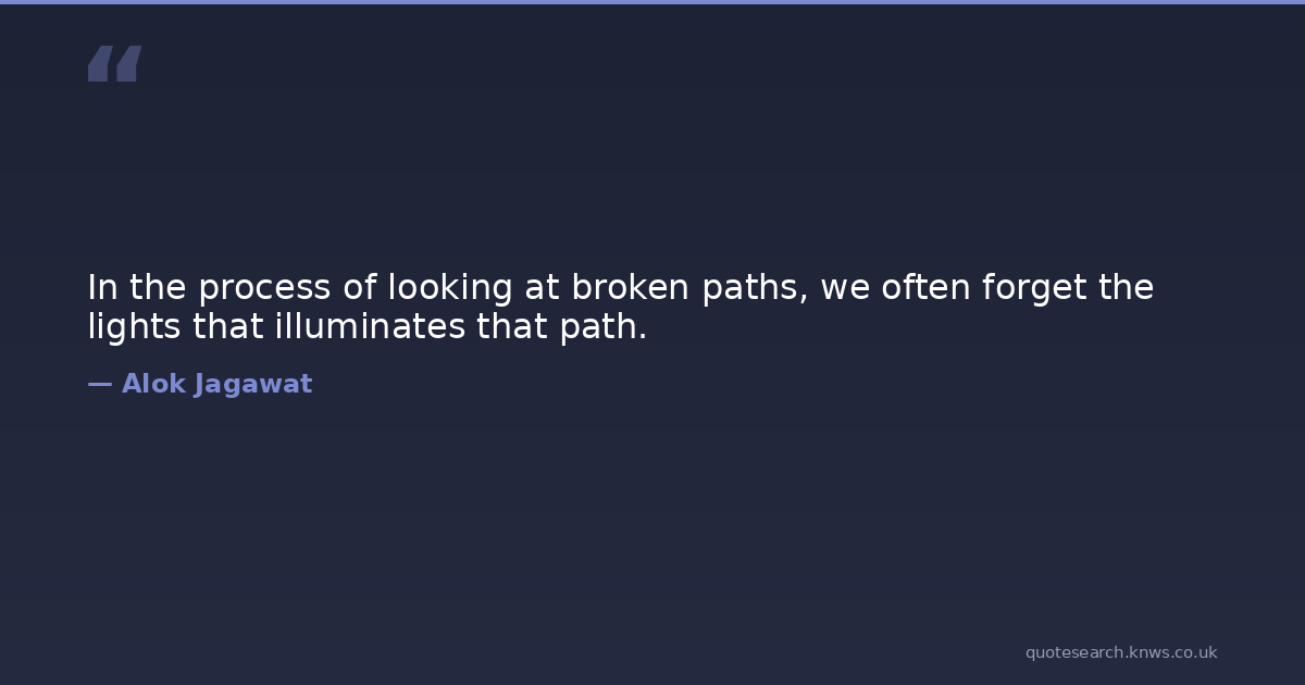 In the process of looking at broken paths, we often forget the lights that illuminates that path.