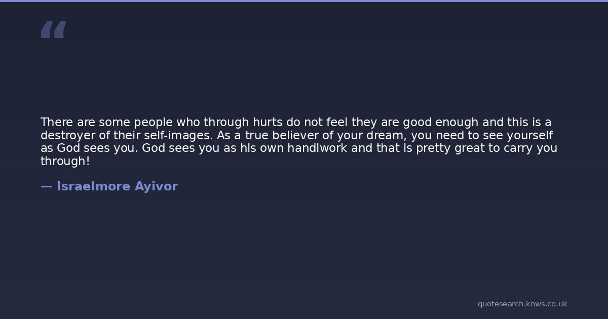 There are some people who through hurts do not feel they are good enough and this is a destroyer of their self-images. As a true believer of your dream, you need to see yourself as God sees you. God sees you as his own handiwork and that is pretty great to carry you through!