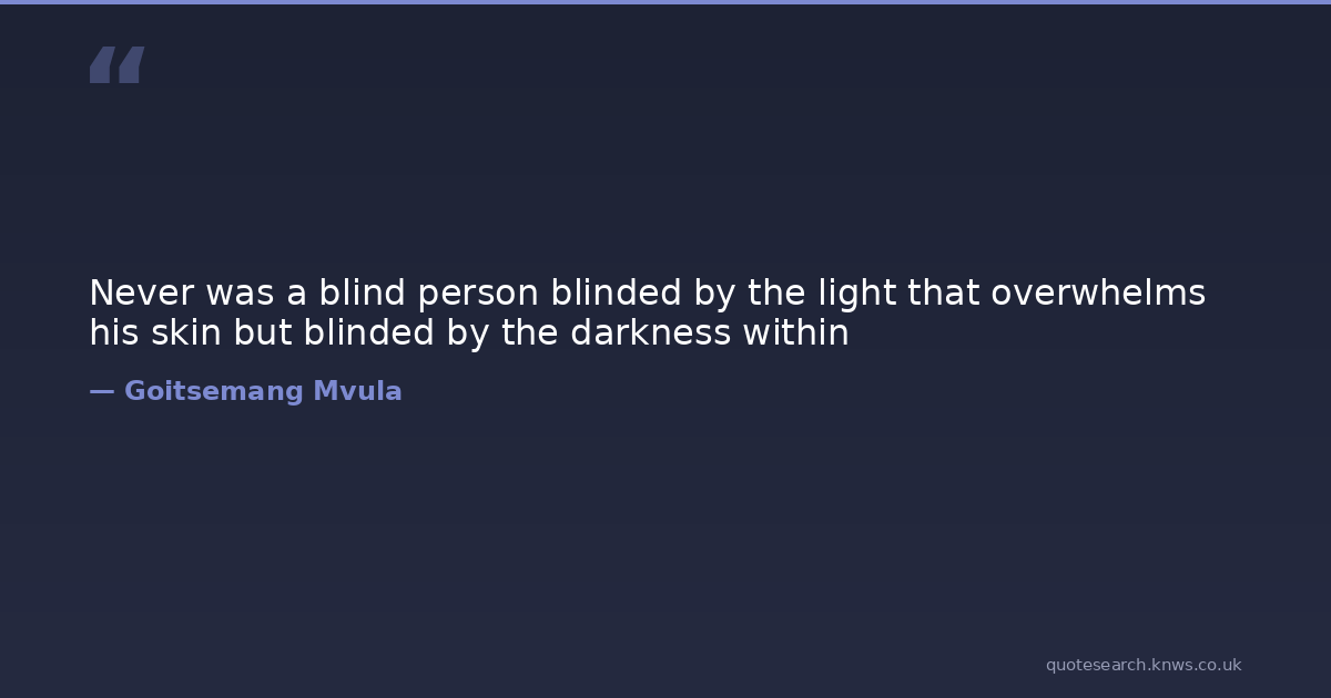 Never was a blind person blinded by the light that overwhelms his skin but blinded by the darkness within