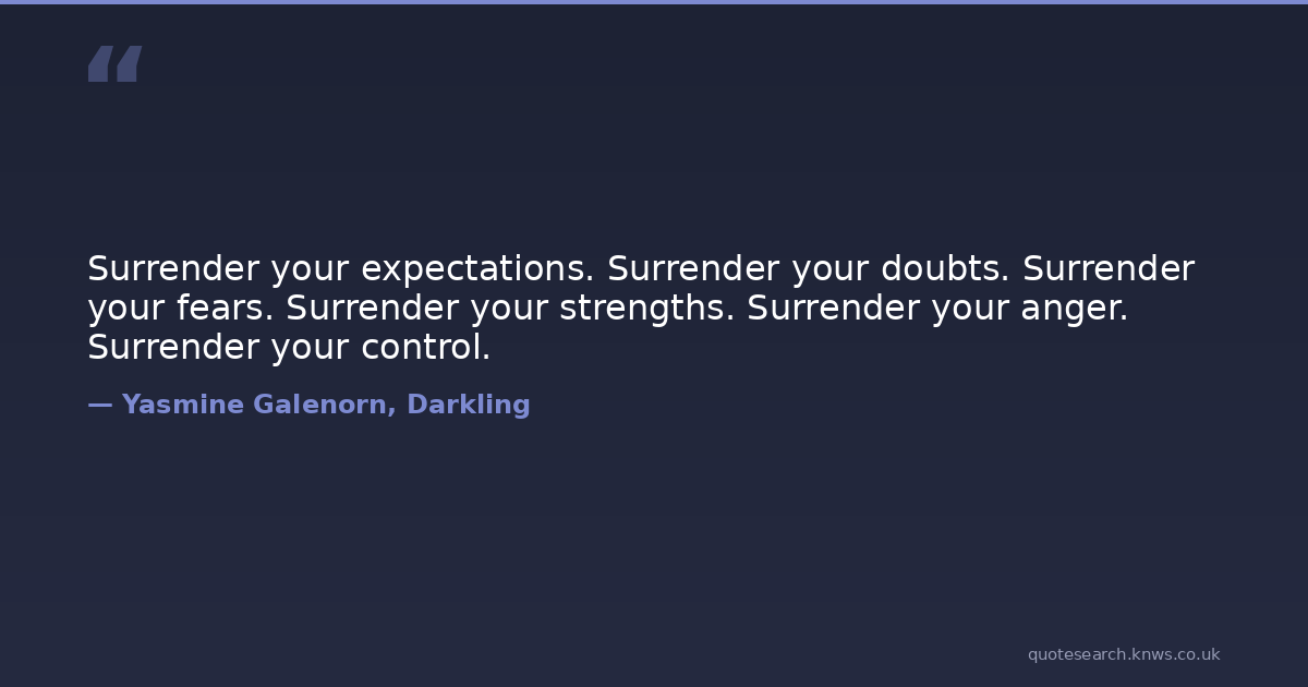 Surrender your expectations. Surrender your doubts. Surrender your fears. Surrender your strengths. Surrender your anger. Surrender your control.