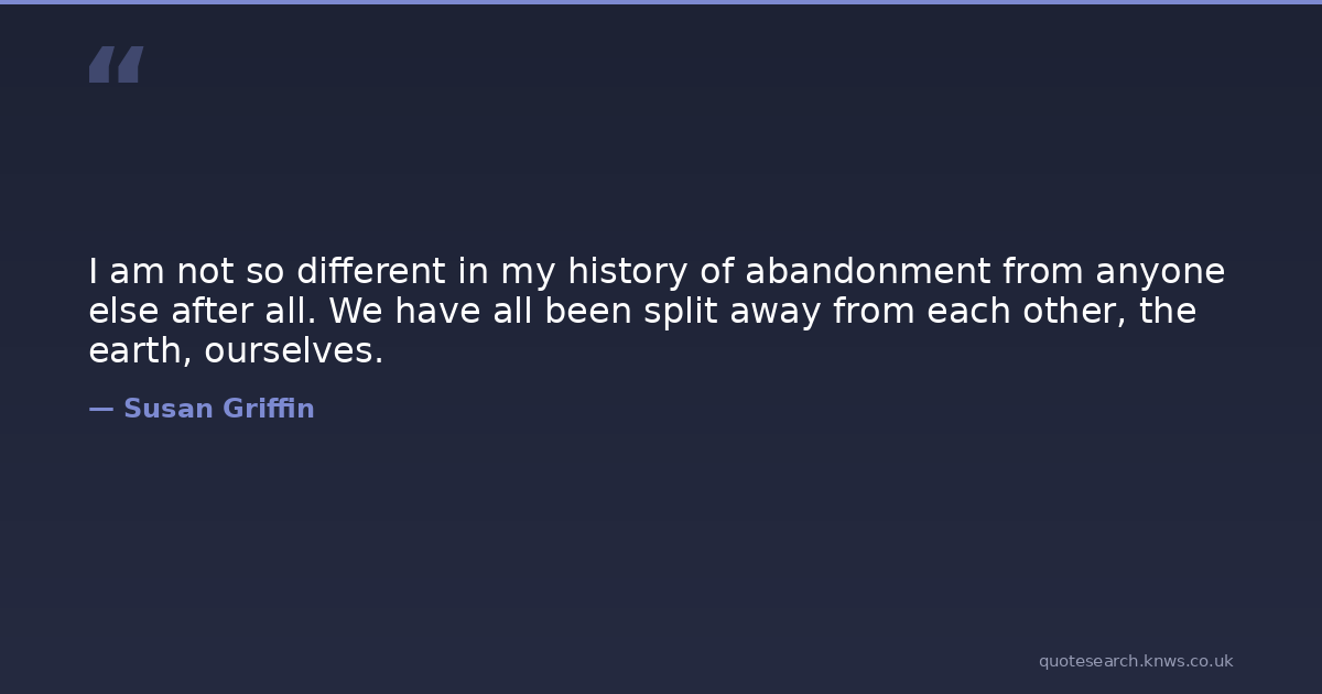 I am not so different in my history of abandonment from anyone else after all. We have all been split away from each other, the earth, ourselves.