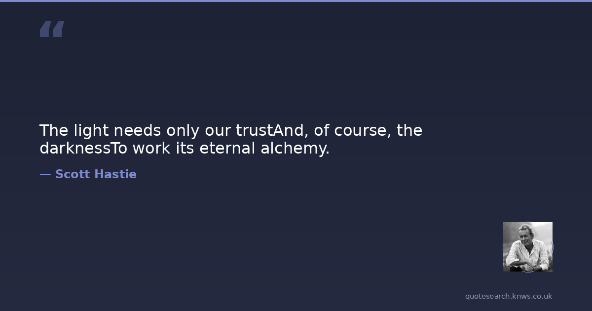 The light needs only our trustAnd, of course, the darknessTo work its eternal alchemy.