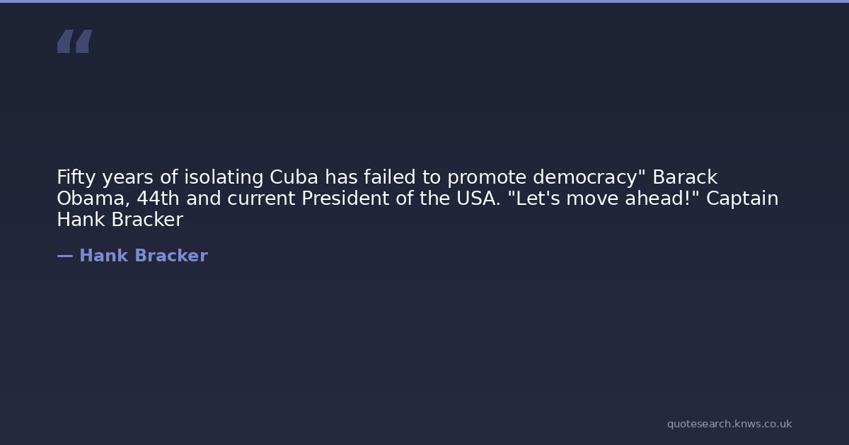 Fifty years of isolating Cuba has failed to promote democracy" Barack Obama, 44th and current President of the USA. "Let's move ahead!" Captain Hank Bracker