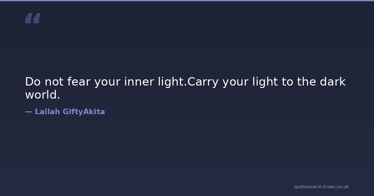 Do not fear your inner light.Carry your light to the dark world. inner-beauty inner-light inner-strength light Download Image Share on X Share on Facebook Copy Link