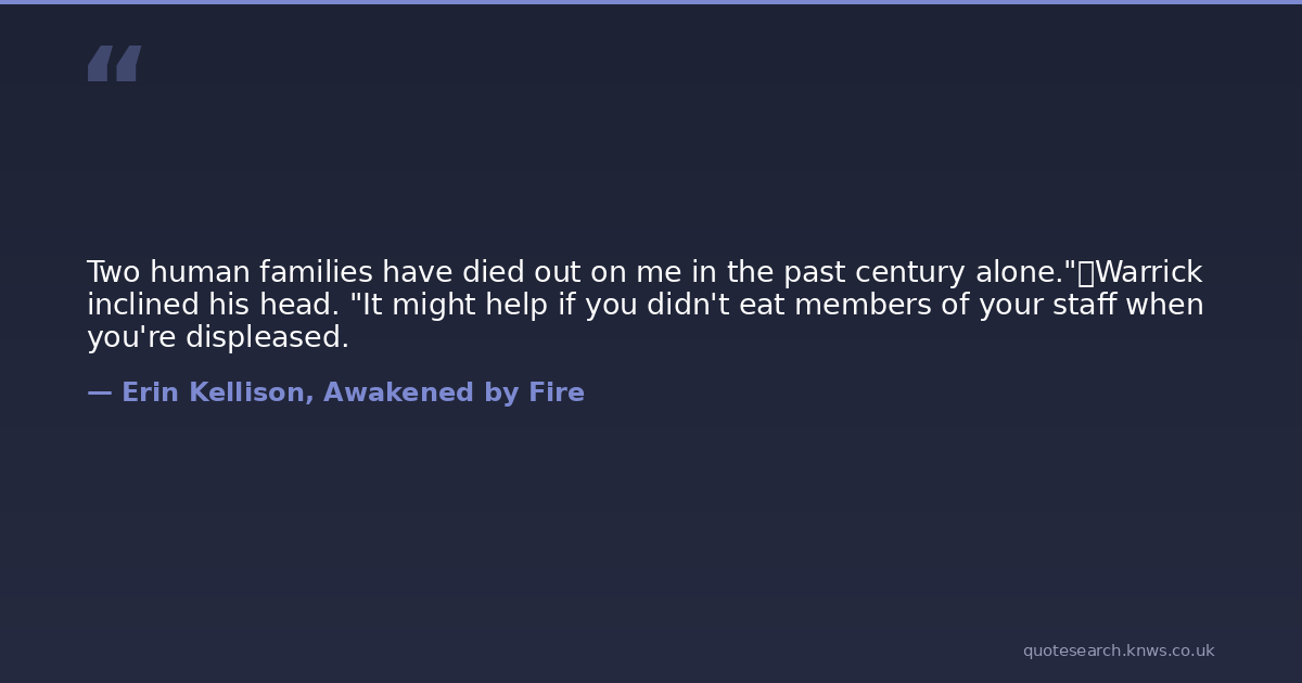 Two human families have died out on me in the past century alone." Warrick inclined his head. "It might help if you didn't eat members of your staff when you're displeased.