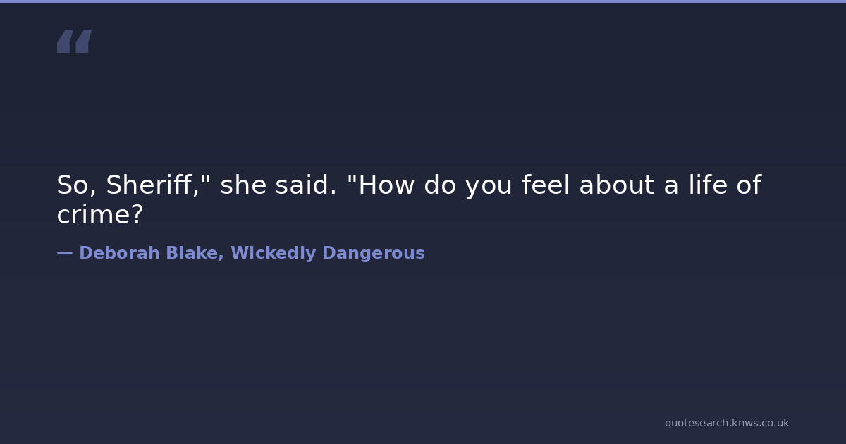 So, Sheriff," she said. "How do you feel about a life of crime?