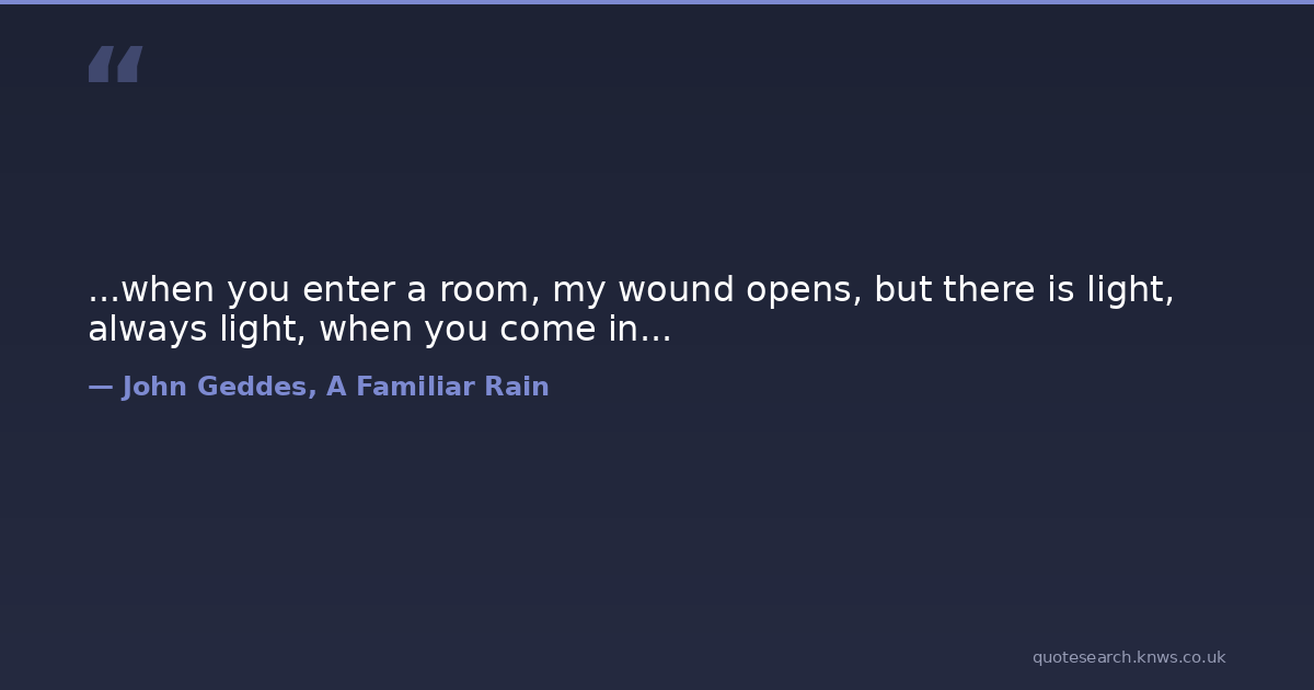 ...when you enter a room, my wound opens, but there is light, always light, when you come in...
