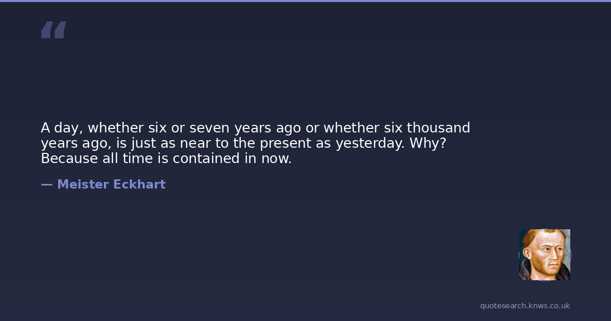 A day, whether six or seven years ago or whether six thousand years ago, is just as near to the present as yesterday. Why? Because all time is contained in now.