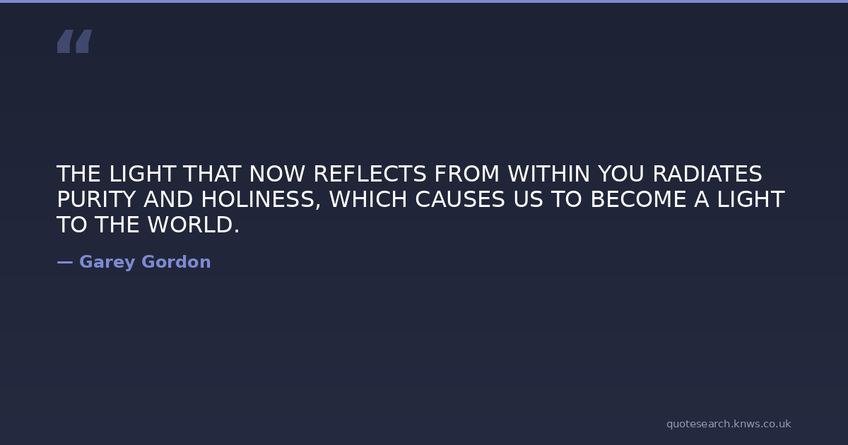 THE LIGHT THAT NOW REFLECTS FROM WITHIN YOU RADIATES PURITY AND HOLINESS, WHICH CAUSES US TO BECOME A LIGHT TO THE WORLD. holiness light purity radiates Download Image Share on X Share on Facebook Copy Link
