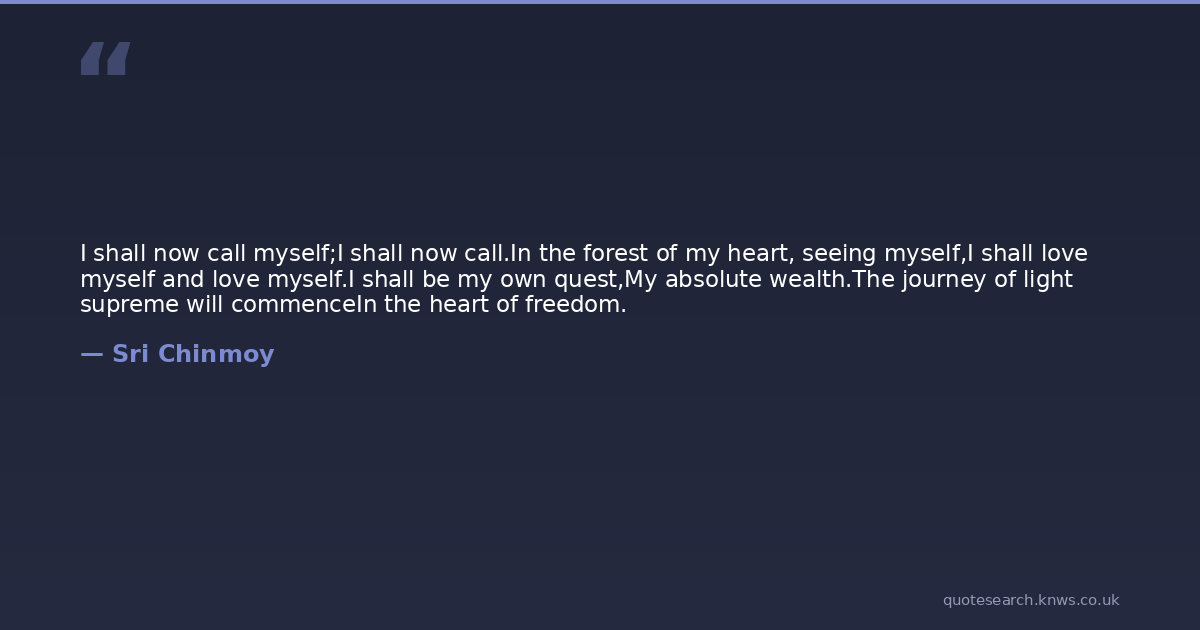 I shall now call myself;I shall now call.In the forest of my heart, seeing myself,I shall love myself and love myself.I shall be my own quest,My absolute wealth.The journey of light supreme will commenceIn the heart of freedom.