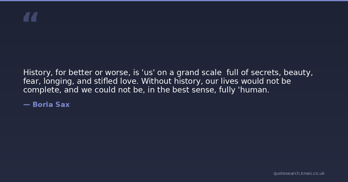 History, for better or worse, is 'us' on a grand scale full of secrets, beauty, fear, longing, and stifled love. Without history, our lives would not be complete, and we could not be, in the best sense, fully 'human.