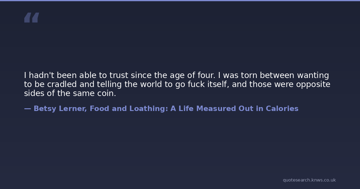I hadn't been able to trust since the age of four. I was torn between wanting to be cradled and telling the world to go fuck itself, and those were opposite sides of the same coin.
