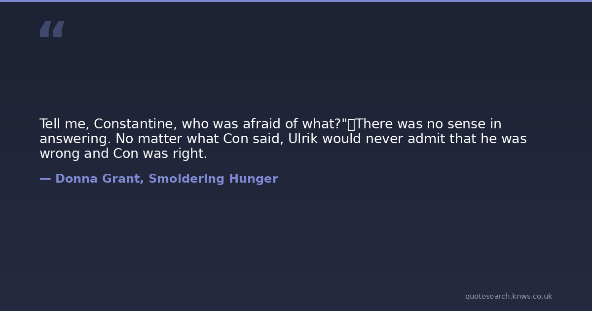 Tell me, Constantine, who was afraid of what?" There was no sense in answering. No matter what Con said, Ulrik would never admit that he was wrong and Con was right.