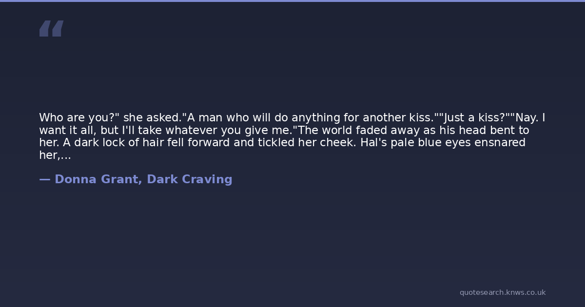 Who are you?" she asked."A man who will do anything for another kiss.""Just a kiss?""Nay. I want it all, but I'll take whatever you give me."The world faded away as his head bent to her. A dark lock of hair fell forward and tickled her cheek. Hal's pale blue eyes ensnared her, trapped her. Captured her.And then his lips were on hers.