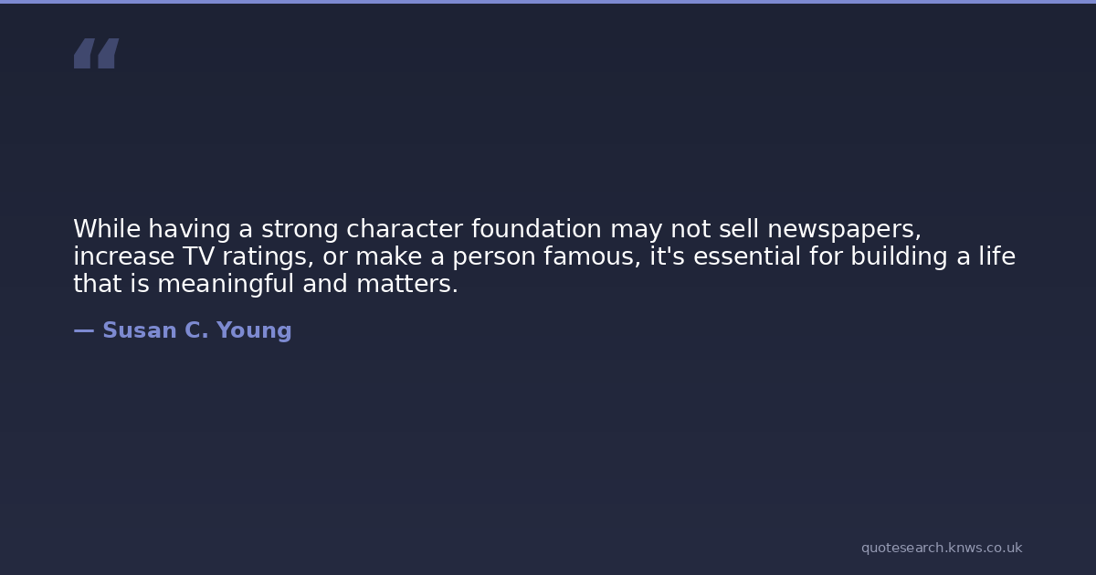 While having a strong character foundation may not sell newspapers, increase TV ratings, or make a person famous, it's essential for building a life that is meaningful and matters.