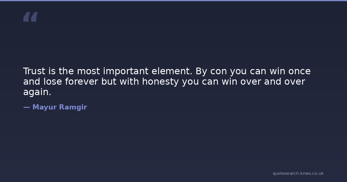 Trust is the most important element. By con you can win once and lose forever but with honesty you can win over and over again.