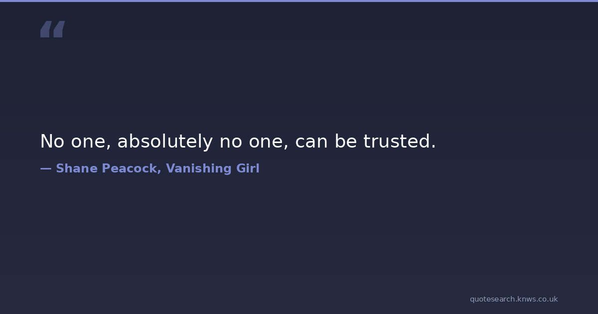 No one, absolutely no one, can be trusted. trust Download Image Share on X Share on Facebook Copy Link