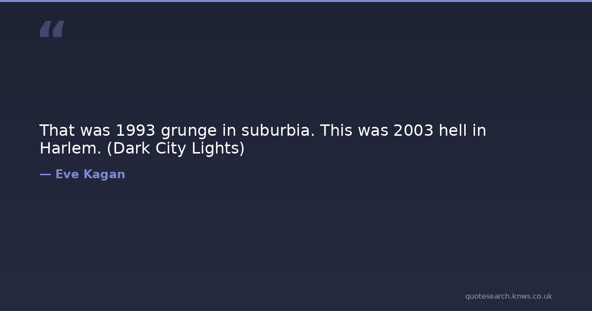 That was 1993 grunge in suburbia. This was 2003 hell in Harlem. (Dark City Lights) 90s anthologies city-life comedy funny grunge harlem history humor humorous-quotes new-york new-york-city retro short-stories Download Image Share on X Share on Facebook Copy Link