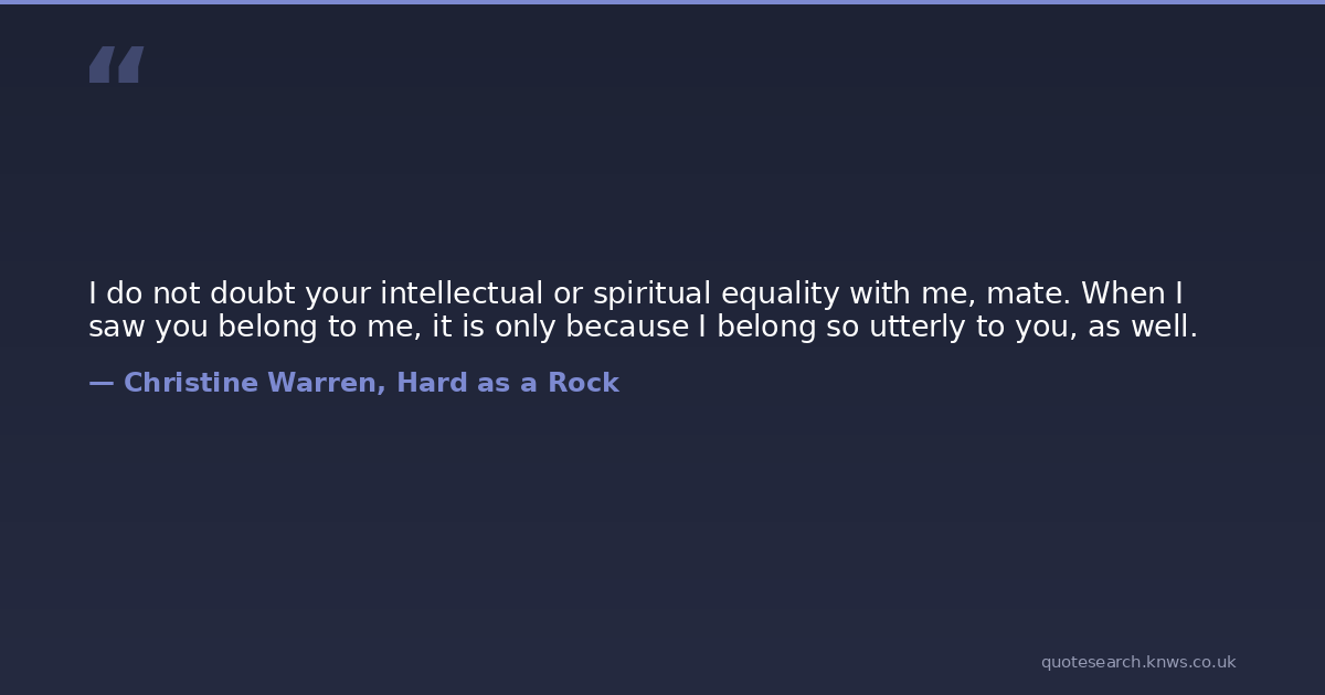I do not doubt your intellectual or spiritual equality with me, mate. When I saw you belong to me, it is only because I belong so utterly to you, as well.