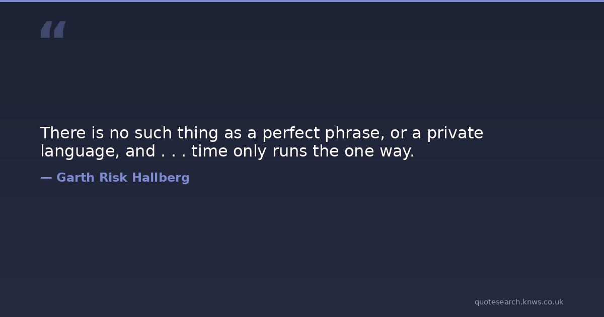 There is no such thing as a perfect phrase, or a private language, and . . . time only runs the one way.
