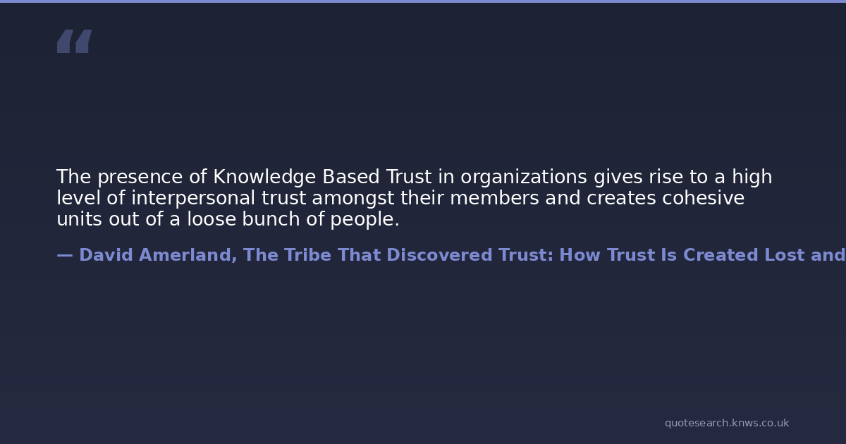 The presence of Knowledge Based Trust in organizations gives rise to a high level of interpersonal trust amongst their members and creates cohesive units out of a loose bunch of people.