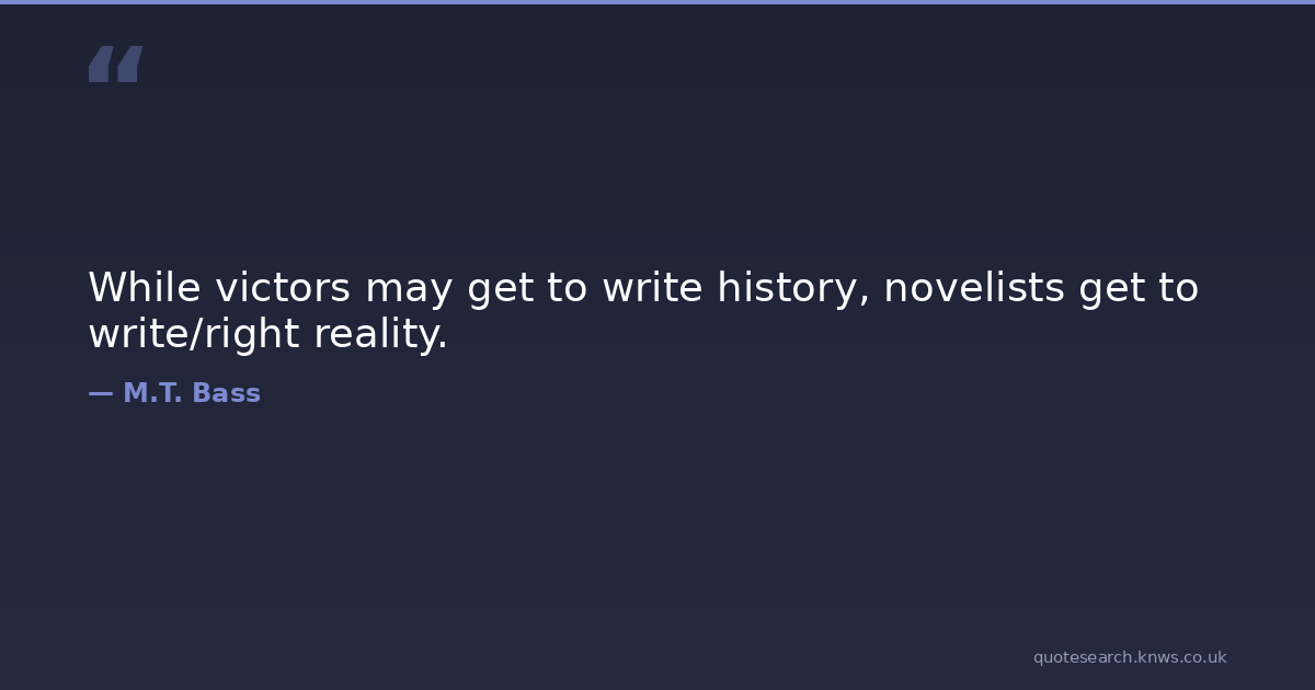 While victors may get to write history, novelists get to write/right reality. history novelist reality victors writing writing-process Download Image Share on X Share on Facebook Copy Link