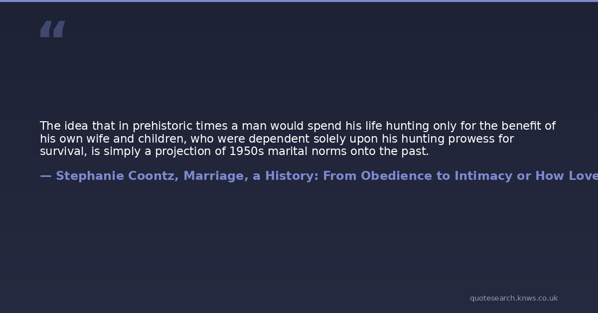 The idea that in prehistoric times a man would spend his life hunting only for the benefit of his own wife and children, who were dependent solely upon his hunting prowess for survival, is simply a projection of 1950s marital norms onto the past.