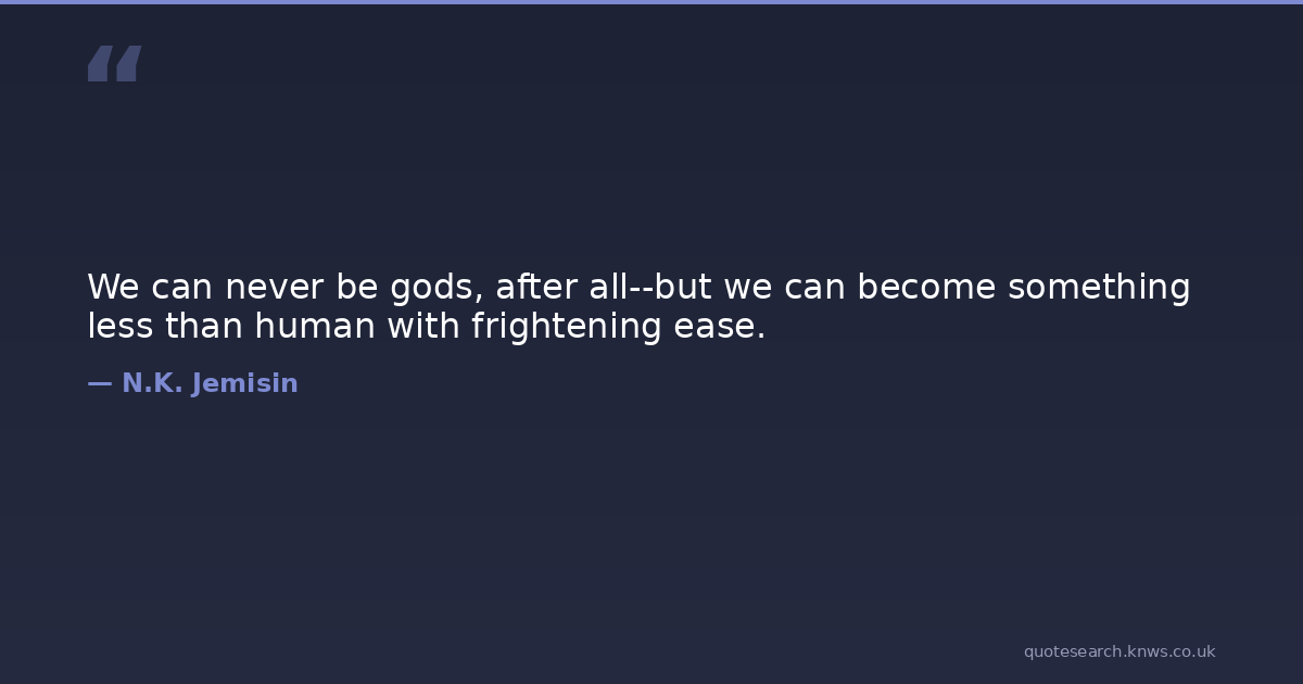 We can never be gods, after all--but we can become something less than human with frightening ease.
