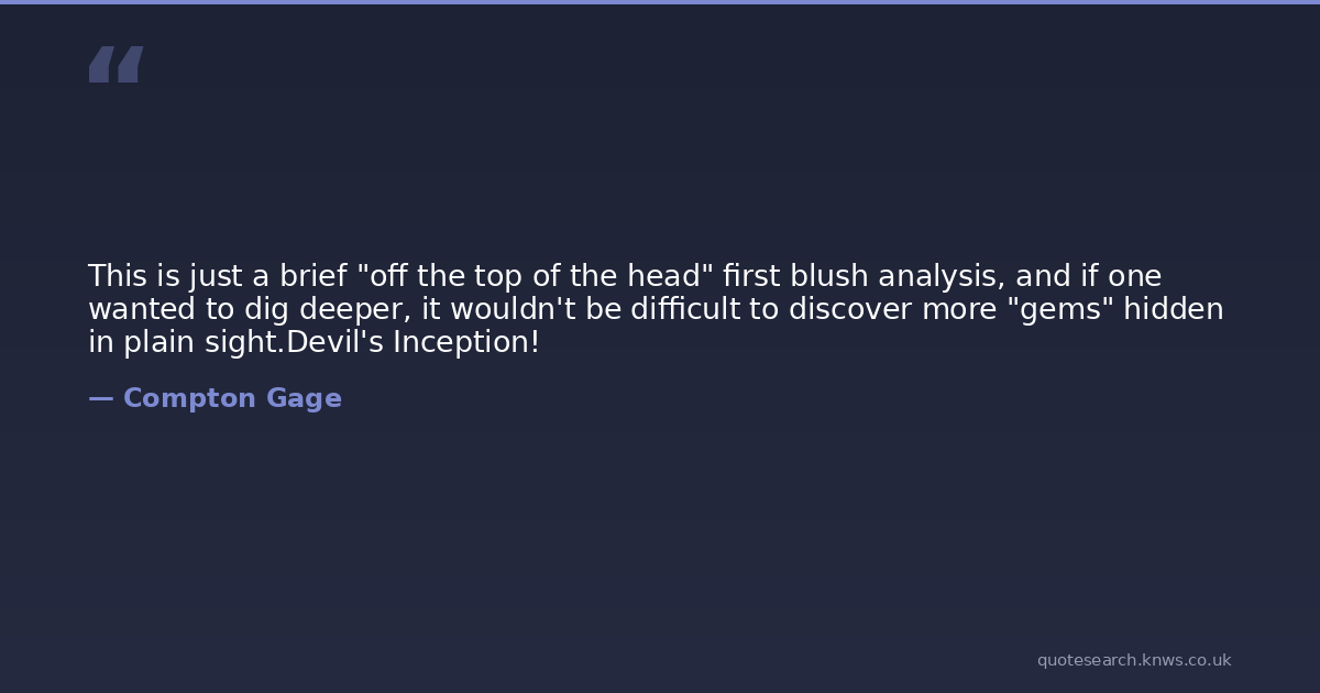 This is just a brief "off the top of the head" first blush analysis, and if one wanted to dig deeper, it wouldn't be difficult to discover more "gems" hidden in plain sight.Devil's Inception!