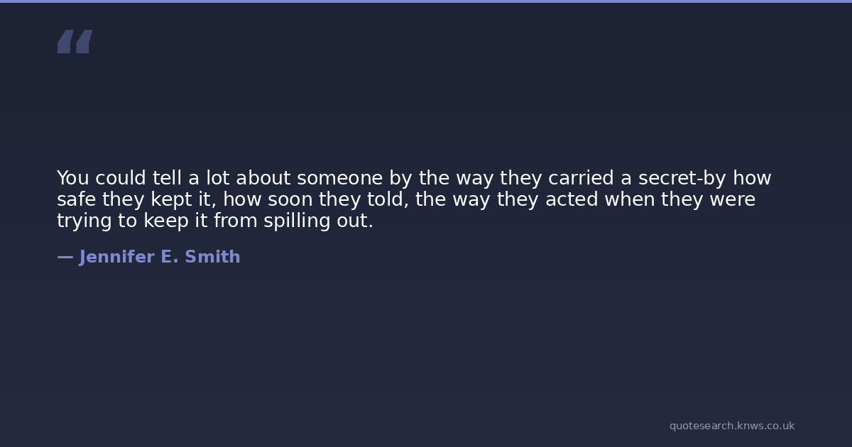 You could tell a lot about someone by the way they carried a secret-by how safe they kept it, how soon they told, the way they acted when they were trying to keep it from spilling out.