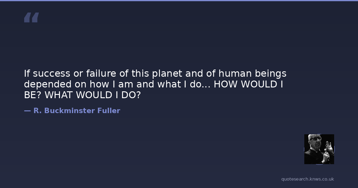 If success or failure of this planet and of human beings depended on how I am and what I do... HOW WOULD I BE? WHAT WOULD I DO?