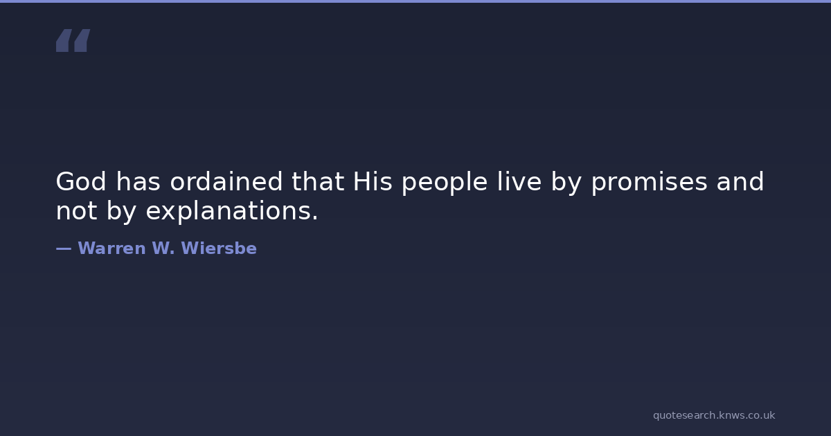 God has ordained that His people live by promises and not by explanations.