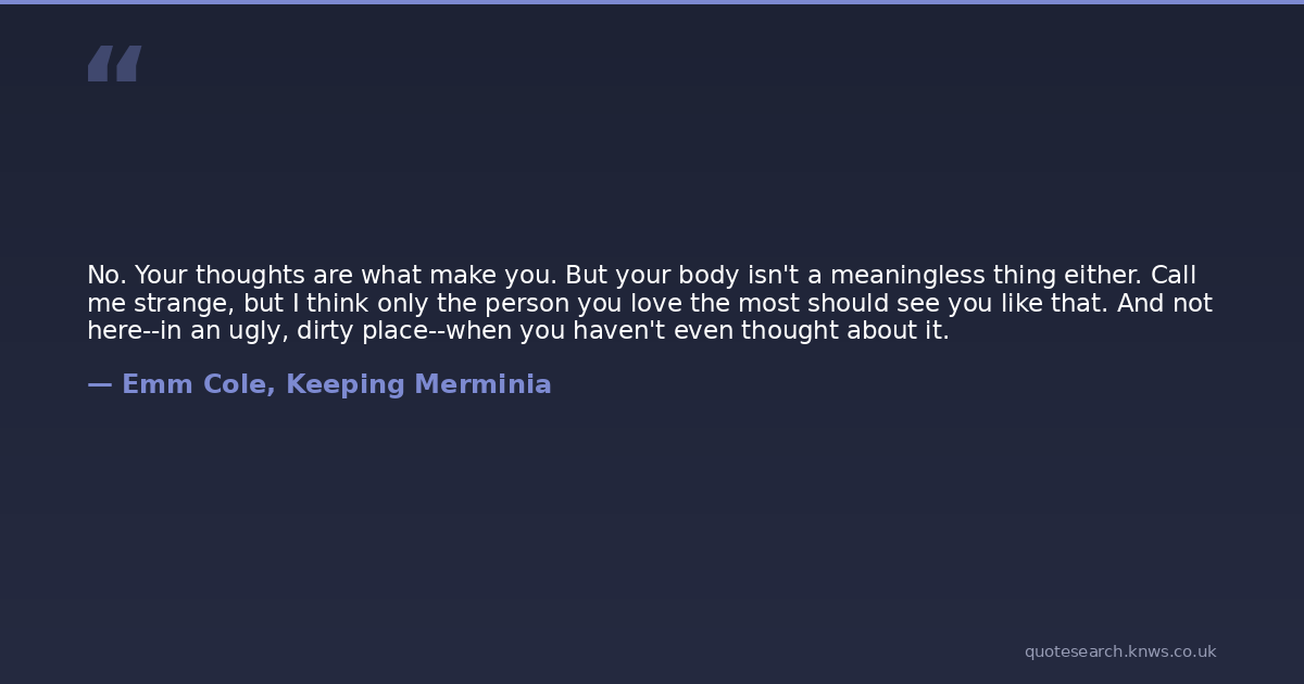 No. Your thoughts are what make you. But your body isn't a meaningless thing either. Call me strange, but I think only the person you love the most should see you like that. And not here--in an ugly, dirty place--when you haven't even thought about it.