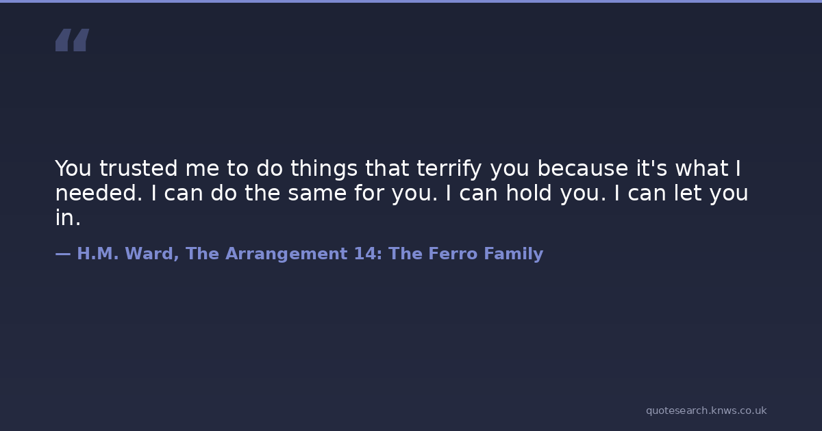 You trusted me to do things that terrify you because it's what I needed. I can do the same for you. I can hold you. I can let you in.