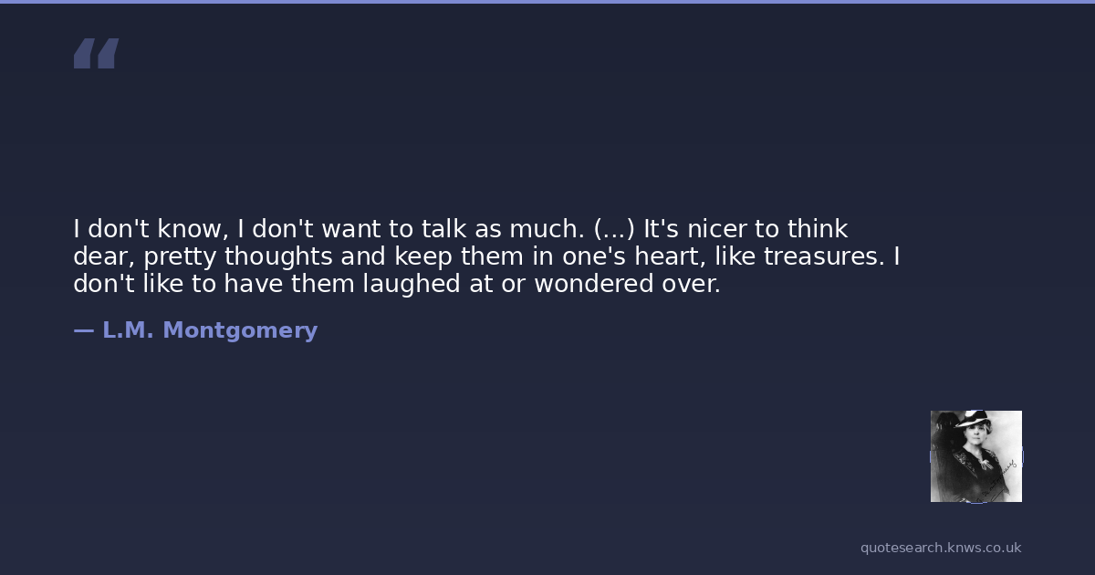 I don't know, I don't want to talk as much. (...) It's nicer to think dear, pretty thoughts and keep them in one's heart, like treasures. I don't like to have them laughed at or wondered over.