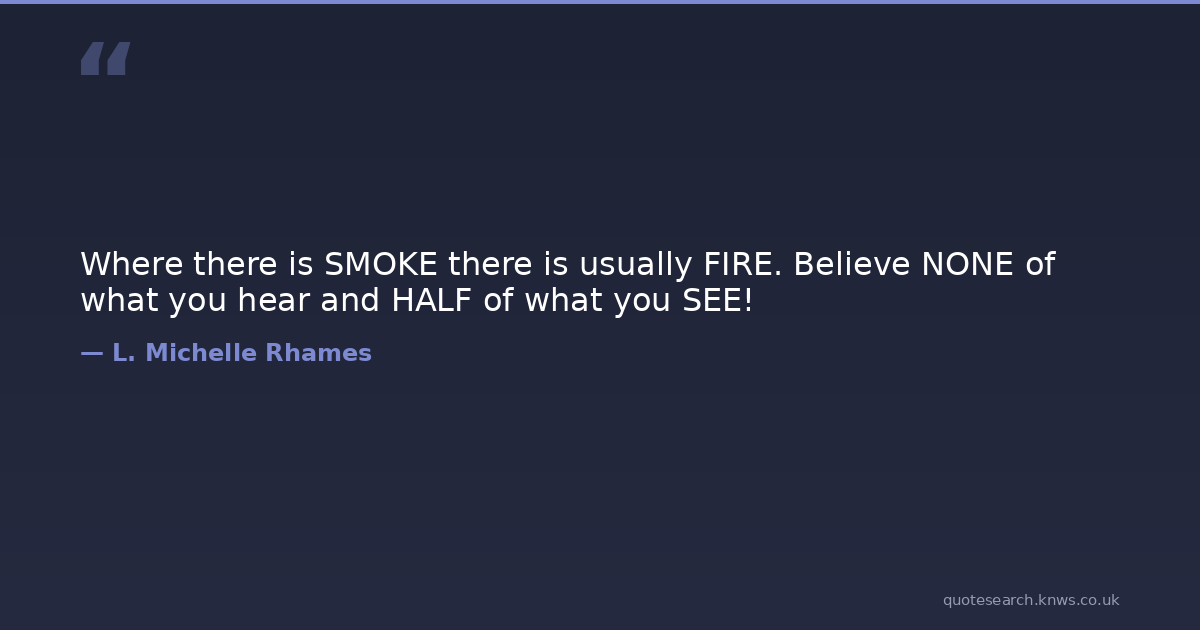 Where there is SMOKE there is usually FIRE. Believe NONE of what you hear and HALF of what you SEE!