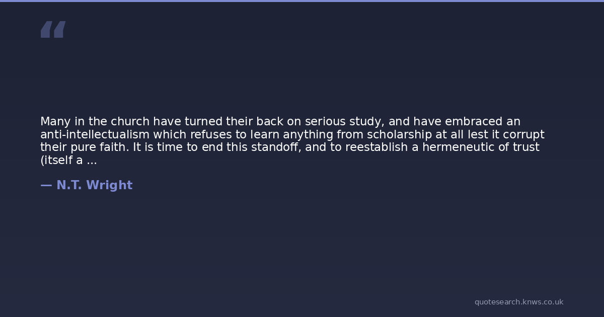 Many in the church have turned their back on serious study, and have embraced an anti-intellectualism which refuses to learn anything from scholarship at all lest it corrupt their pure faith. It is time to end this standoff, and to reestablish a hermeneutic of trust (itself a sign of the gospel!) in place of the hermeneutic of suspicion which the church has so disastrously borrowed from the postmodern world.