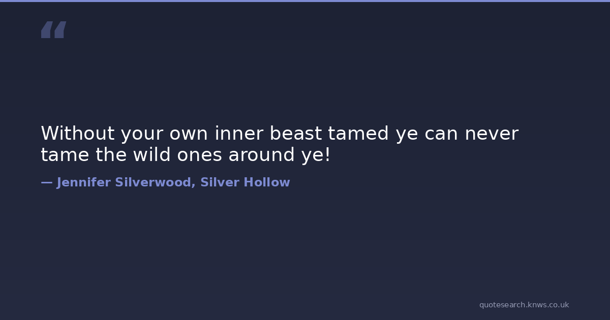 Without your own inner beast tamed ye can never tame the wild ones around ye!