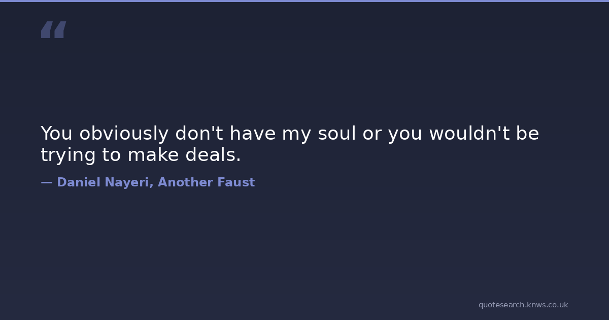 You obviously don't have my soul or you wouldn't be trying to make deals.