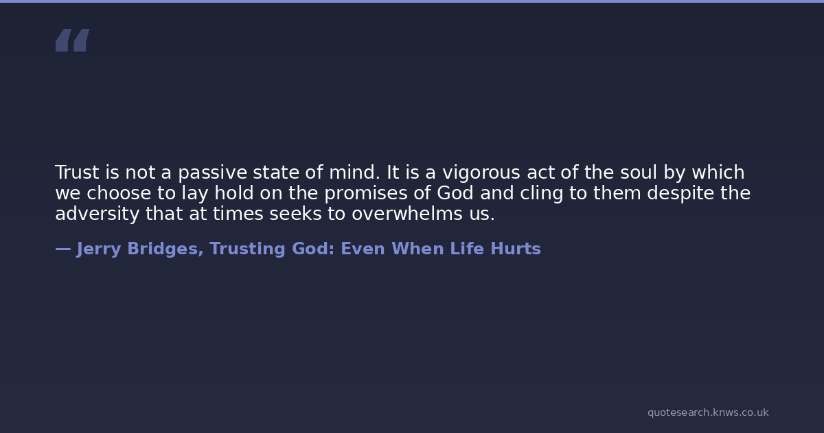 Trust is not a passive state of mind. It is a vigorous act of the soul by which we choose to lay hold on the promises of God and cling to them despite the adversity that at times seeks to overwhelms us.