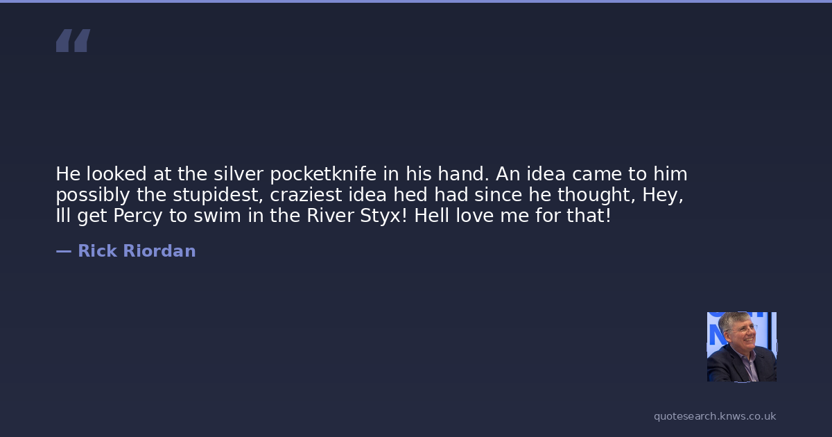 He looked at the silver pocketknife in his hand. An idea came to him possibly the stupidest, craziest idea hed had since he thought, Hey, Ill get Percy to swim in the River Styx! Hell love me for that!