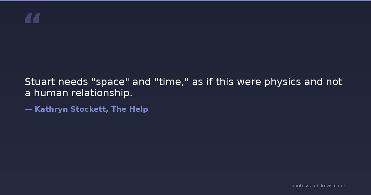 Stuart needs "space" and "time," as if this were physics and not a human relationship.