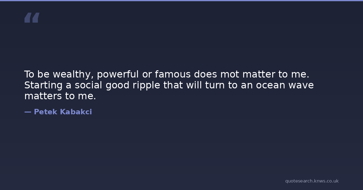 To be wealthy, powerful or famous does mot matter to me. Starting a social good ripple that will turn to an ocean wave matters to me.
