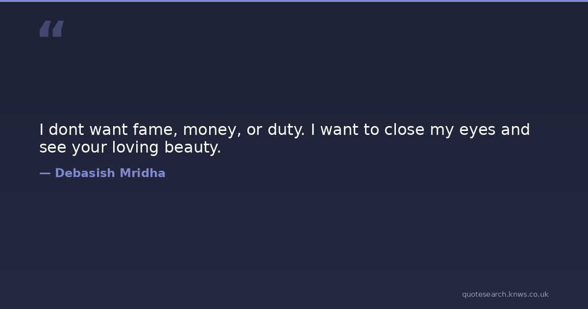 I dont want fame, money, or duty. I want to close my eyes and see your loving beauty.