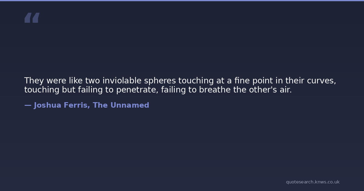 They were like two inviolable spheres touching at a fine point in their curves, touching but failing to penetrate, failing to breathe the other's air.
