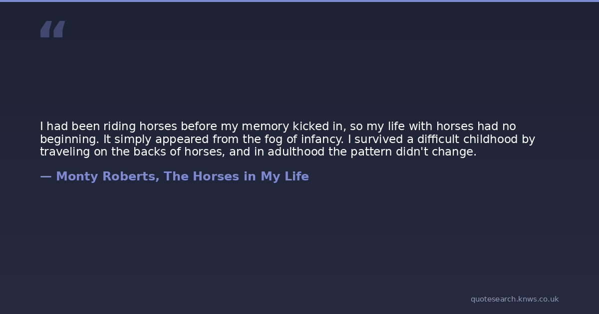 I had been riding horses before my memory kicked in, so my life with horses had no beginning. It simply appeared from the fog of infancy. I survived a difficult childhood by traveling on the backs of horses, and in adulthood the pattern didn't change.