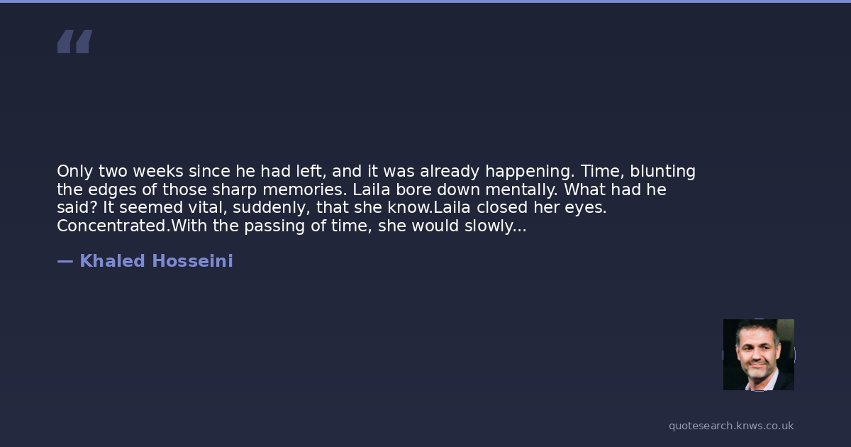 Only two weeks since he had left, and it was already happening. Time, blunting the edges of those sharp memories. Laila bore down mentally. What had he said? It seemed vital, suddenly, that she know.Laila closed her eyes. Concentrated.With the passing of time, she would slowly tire of this exercise. She would find it increasingly exhausting to conjure up, to dust off, to resuscitate once again what was long dead. There would come a day, in fact, years later, when Laila would no longer bewail his loss. Or not as relentlessly; not nearly. There would come a day when the details of his face would begin to slip from memory's grip, when overhearing a mother on the street call after her child by Tariq's name would no longer cut her adrift. She would not miss him as she did now, when the ache of his absence was her unremitting companionlike the phantom pain of an amputee.Except every once in a long while, when Laila was a grown woman, ironing a shirt or pushing her children on a swing set, something trivial, maybe the warmth of a carpet beneath her feet on a hot day or the curve of a stranger's forehead, would set off a memory of that afternoon together. And it would come rushing back. The spontaneity of it. Their astonishing imprudence...It would flood her, steal her breath.But then it would pass. The moment would pass. Leave her feeling deflated, feeling noting but a vague restlessness.