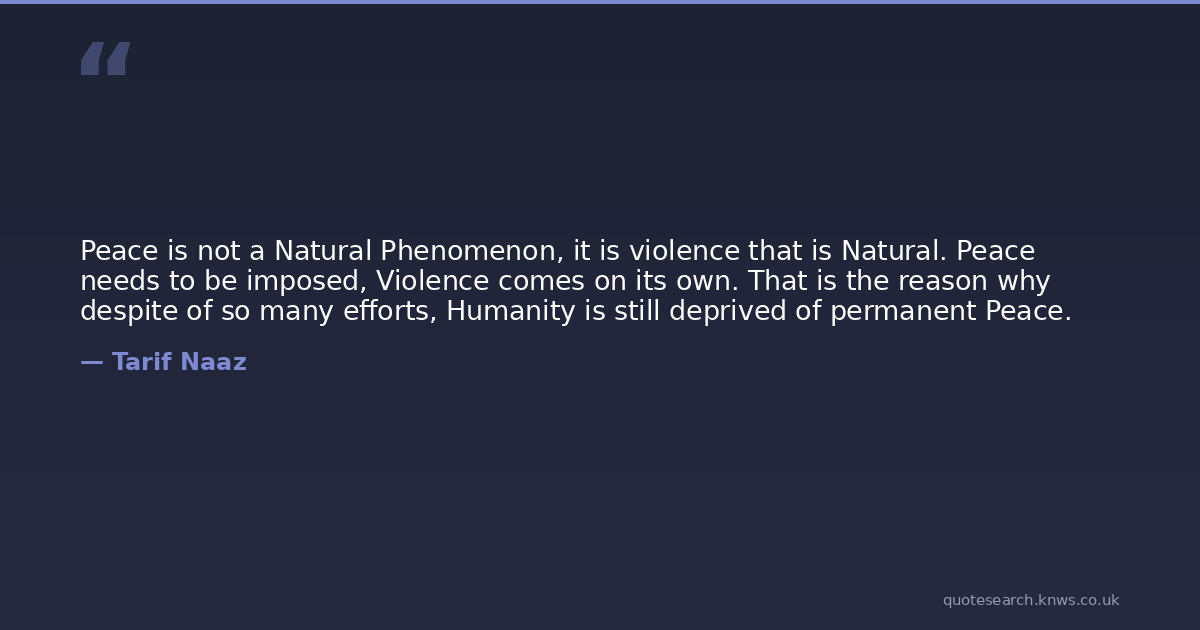 Peace is not a Natural Phenomenon, it is violence that is Natural. Peace needs to be imposed, Violence comes on its own. That is the reason why despite of so many efforts, Humanity is still deprived of permanent Peace.